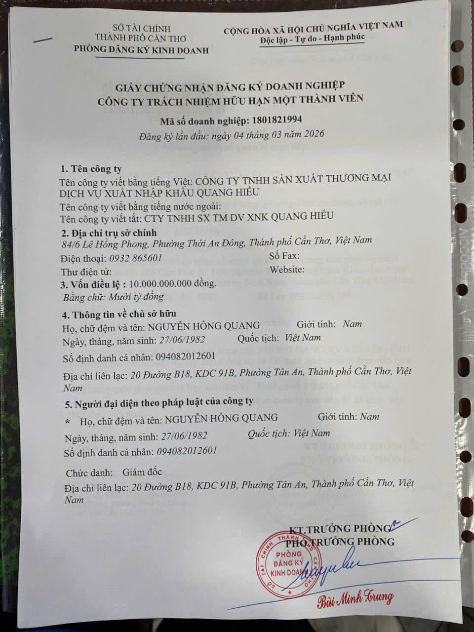CÔNG TY TNHH SẢN XUẤT THƯNG MẠI DỊCH VỤ XUẤT NHẬP KHẨU HẠNH HIẾU
